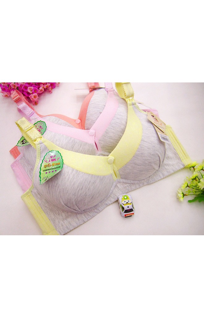 เสื้อในให้นมสีเทาตัดกับขอบสีสดใส แบบไม่มีโครง เสริมฟองน้ำ
