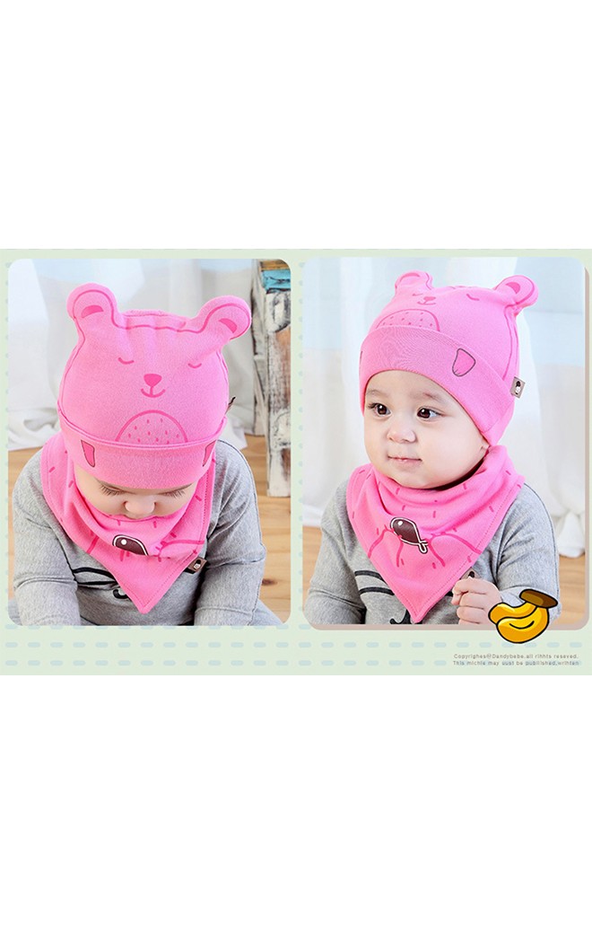 เซ็ตหมวกบีนนี่ผ้ายืดลายหมีมาพร้อมผ้ากันเปื้อน TIANYIBEAR