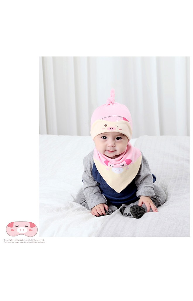 เซ็ตหมวกเด็กพร้อมผ้ากันเปื้อนลาย เป็ด หมี ลูกเจี๊ยบ จาก yoyotree