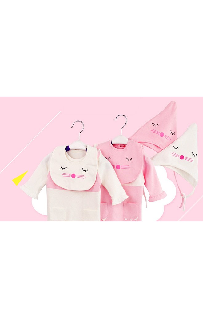 เซ็ตหมวกเด็กยอดแหลมมาพร้อมผ้ากันเปื้อนลายแมวหลับปุ๋ย