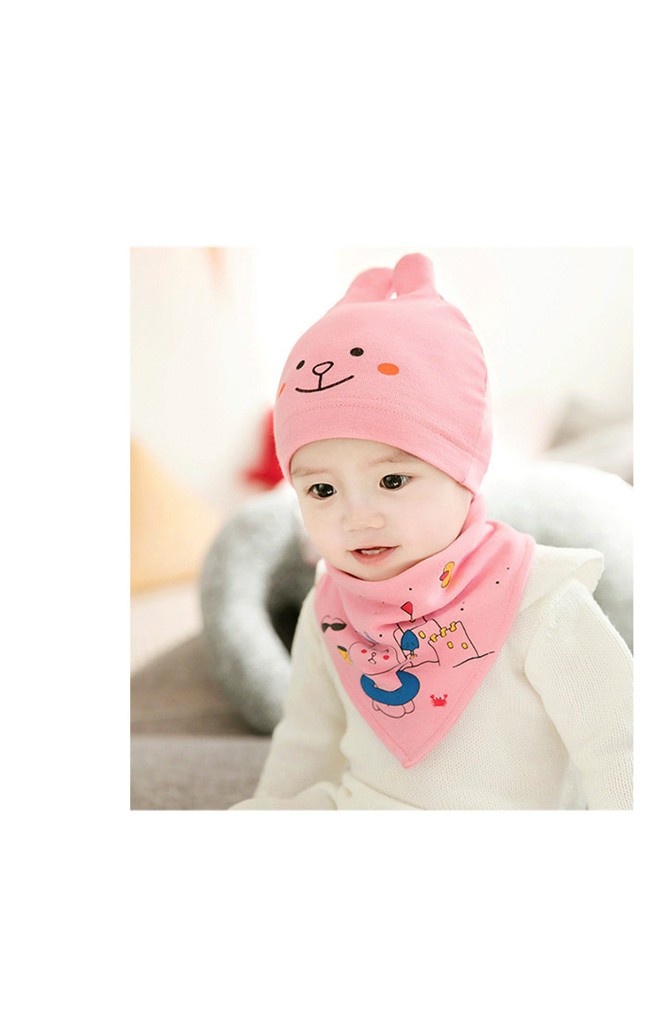เซ็ตหมวกเด็กลายกระต่ายหูตั้งมาพร้อมผ้ากันเปื้อน จาก GZMM