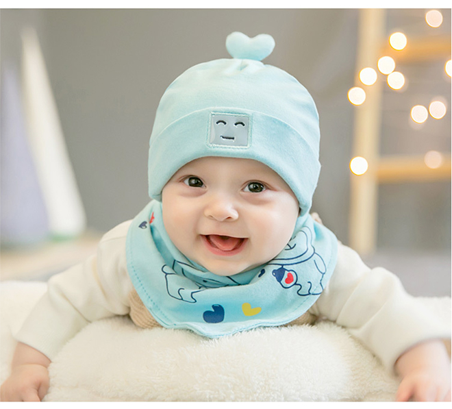 เซ็ตหมวกเด็กเล็กพร้อมผ้ากันเปื้อนลายหุ่นยนต์ลายเข้าชุดกัน GZMM