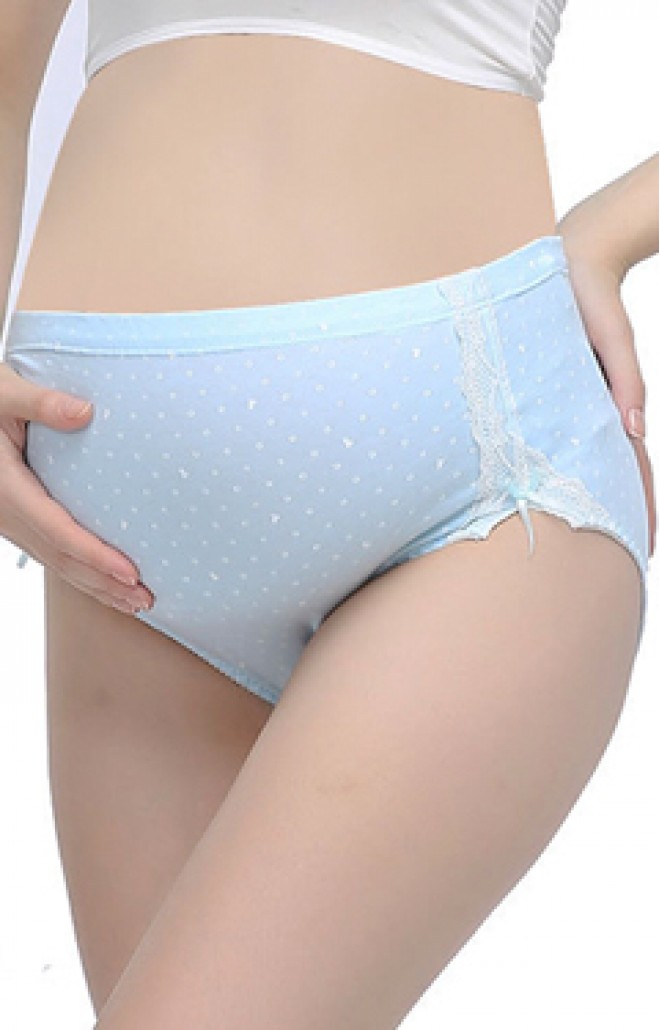 กางเกงในคนท้องแบบเอวสูงลายวงกลม แต่งลูกไม้ด้านข้างแตกชายแต่งโบว์เล็ก